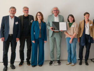 Verleihung der Ehrenmitgliedschaft (von links nach rechts): Die Laudatoren Prof. Thomas Will (TU Dresden), Prof. Hans-Rudolf Meier (Bauhaus-Universität Weimar), Prof. Ingrid Scheurmann (TU Dortmund), Achim Hubel, Prof. Stephanie Herold (1. Vorsitzende, TU Berlin), Prof. Heike Oevermann (2. Vorsitzende, TU Wien)